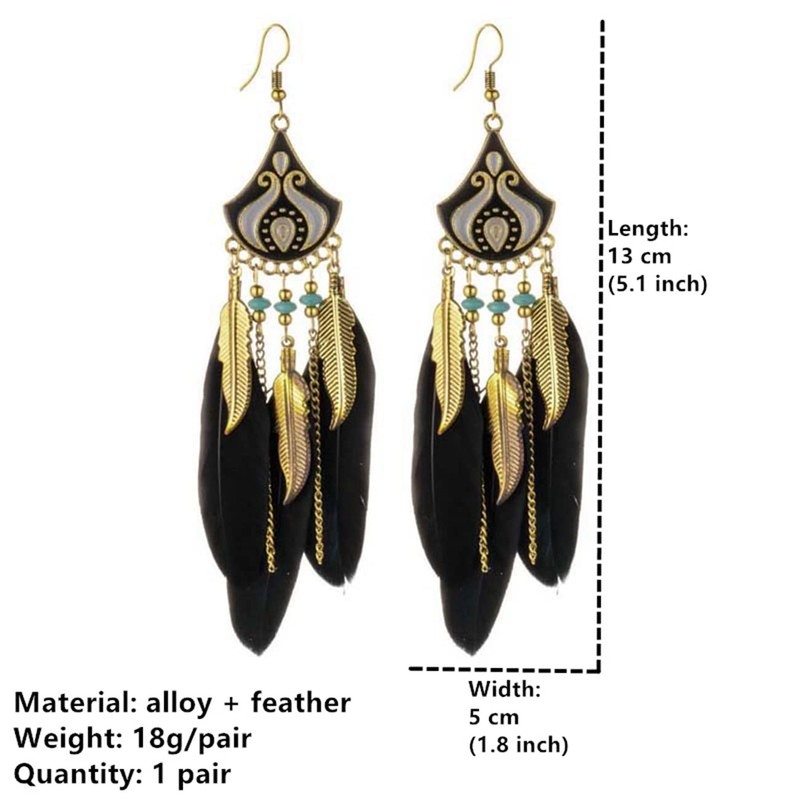 Boho Feather Earrings for Women Bohemian Black White Red Fringe Tassel Long Drop Dangle Earrings (Black)