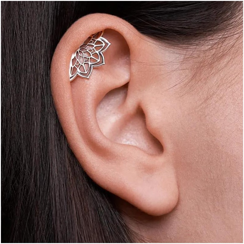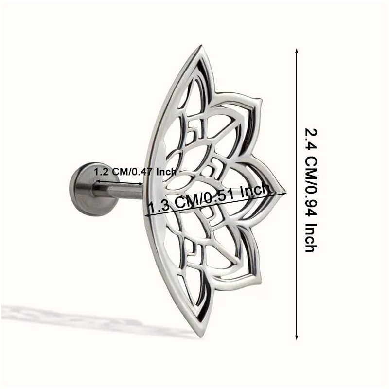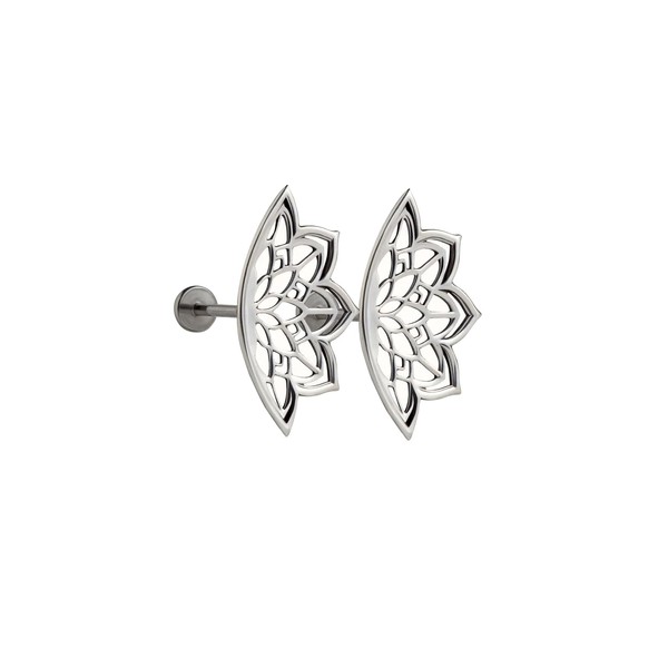 Boho Helix Earrings For Women, Gothic Punk Geometric Mandala Lotus Flower Hidden Cartilage Helix Piercing Unique Studs Statement Jewelry Gift (Lotus Silver)