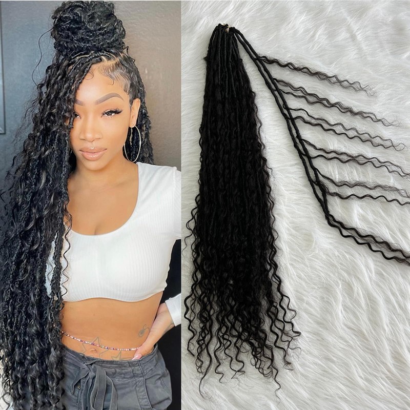 Boho Locs Crochet Braids Pre Looped With Human Hair Extensions Curly Ends Deep Wave Goddess Soft Locs Box Knotless Braids Hair Synthetic Dreadlocks Braiding for Women CHARMING YOU