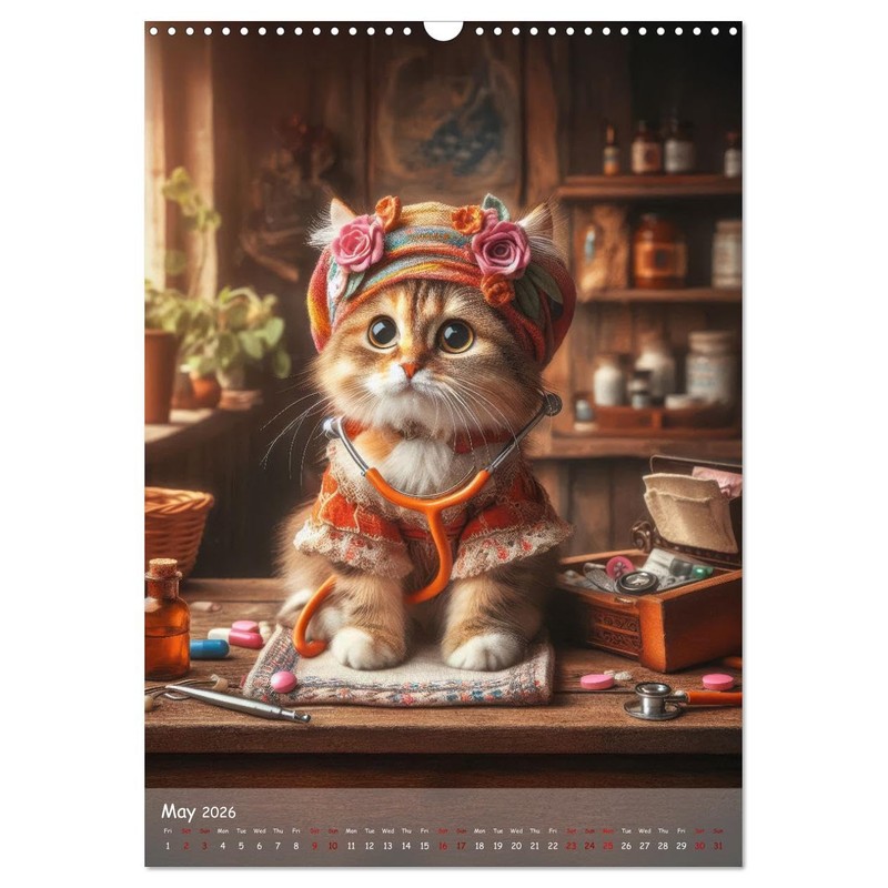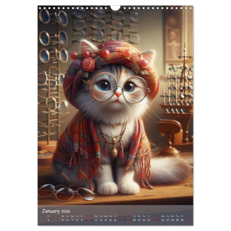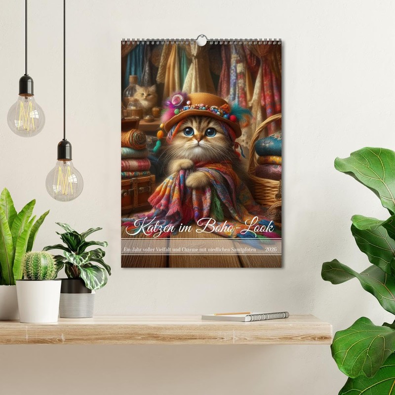 Boho-look cats - A year full of variety and charm with cute velvet paws, US-Version (Wall Calendar 2026 DIN A3 Portrait), CALVENDO 12 Month Wall Calendar