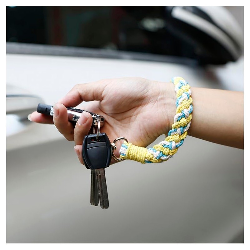 - Macrame Keychain Wristlet: Wristlet lanyard for keys,the key lanyard rope is 4.72inches and 7.5 inches total with Key Chain Swivel Hook, It's long enough as a Women Hand wrist lanyard keychain for keys, Purse, Car Keys Holder, wallet, purse, backpack, cardbag, travel bag, widely using in travel, home, office, workshop, shopping, fitness.