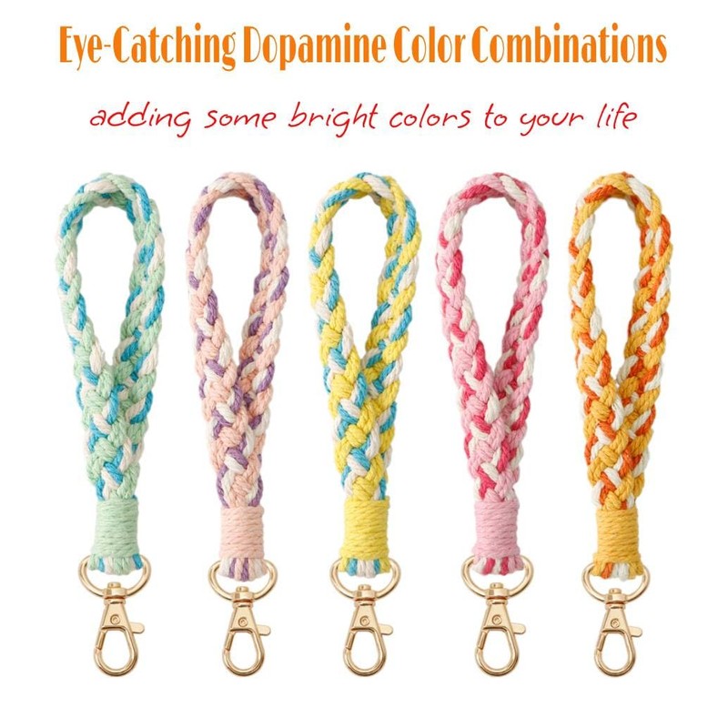 - Dopamine Color Macrame Keychain Wristlet:Eye-Catching Dopamine Color Combination key chain, adding bright colors to make your life more happy and relax. Cute keychain Boho Style is fashion and beautiful,with this Boho wrist lanyard ,Easily collect all keys together, no keys loss anymore, Bring convenience to life.