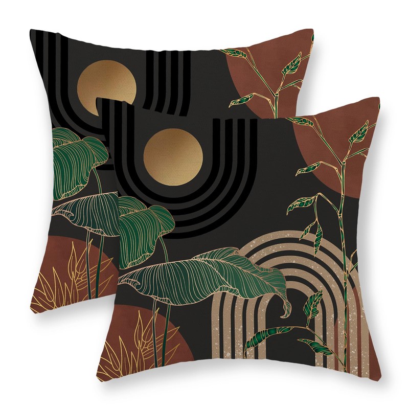 Boho Pillow Covers 18x18 Set of 2 Grey Rust Brown Mid Century Throw Pillows Outdoor Gold Green Leaf Tropical Decorative Pillowcase Bohemian Abstract Farmhouse Cushion Case for Couch Sofa Decor