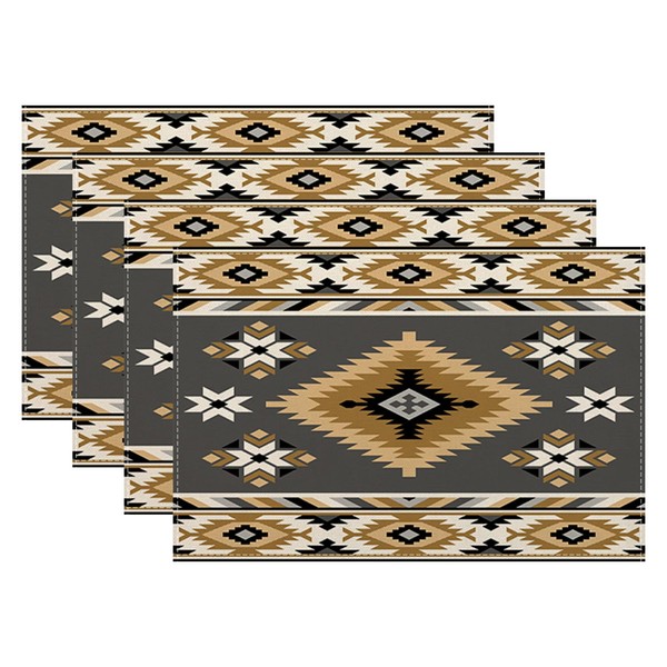 Boho Placemats Set of 4,Western Native Black Grey Brown Aztec Geometry Table ...