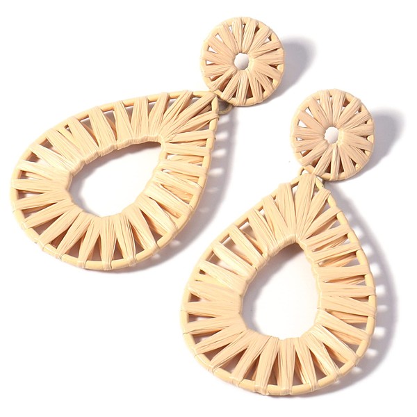 Boho Raffia Earrings Statement Teardrop Earrings Drop Dangle Bohemian Earrings(Nature)