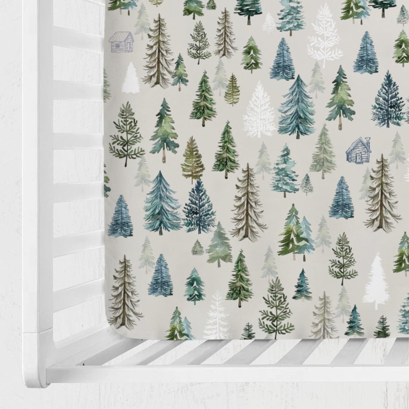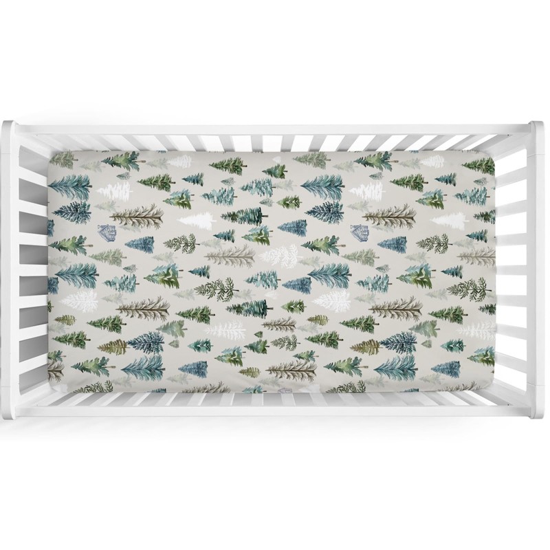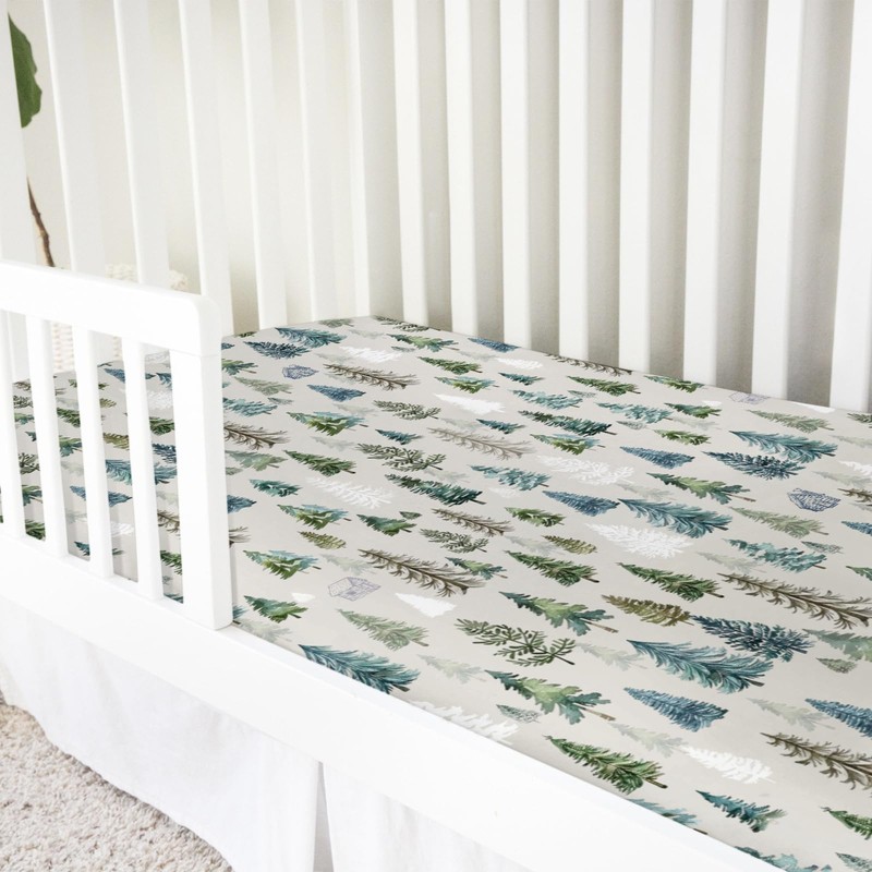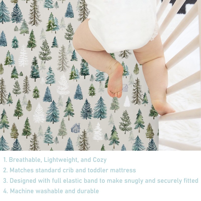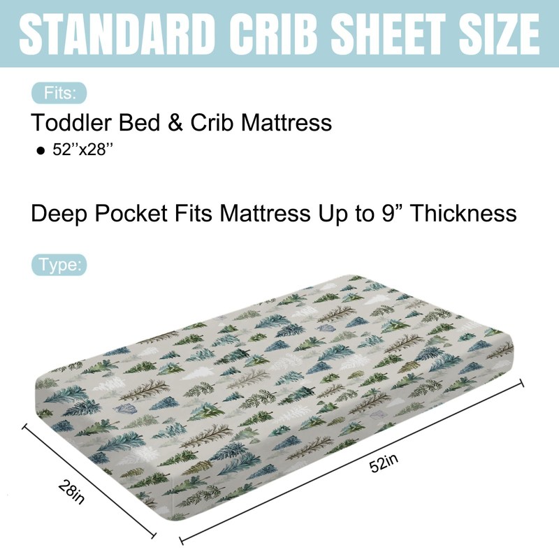 Boho Woodland Trees Baby Crib Sheet 52''x28'' Retro Pine Trees Forest Stretchy Fitted Crib Mattress Cover for Boy Girl Winter Holiday Soft Baby Bed Sheets for Standard Crib and Toddler Mattresses