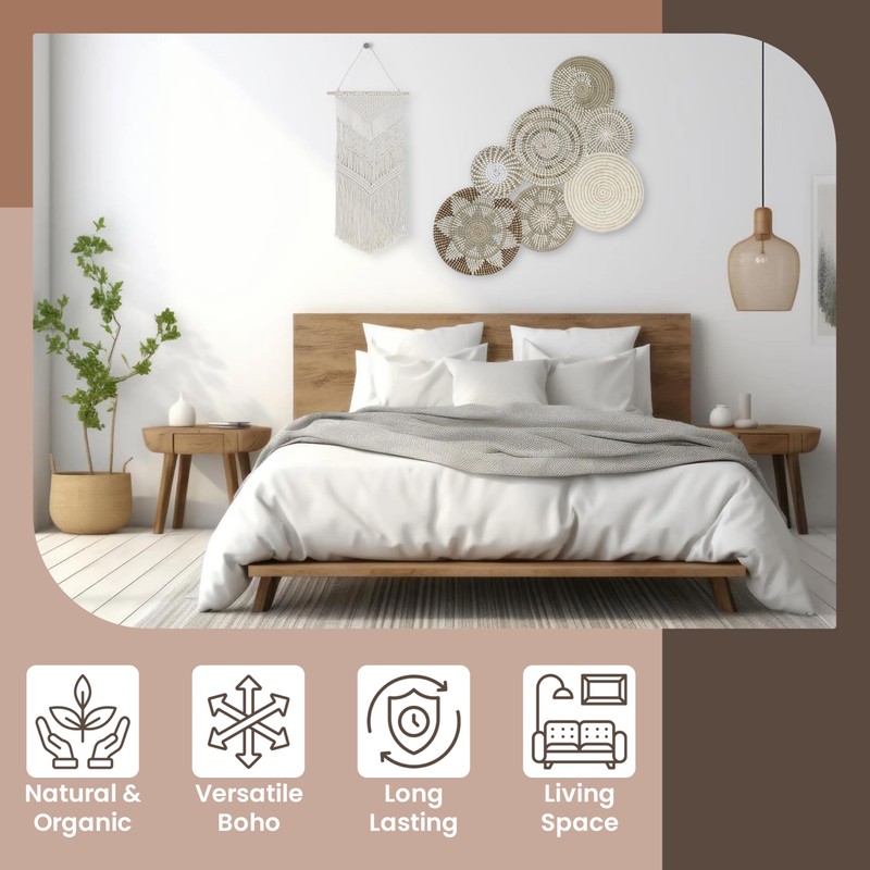 • ☮️ STUNNING BOHO ROOM AND WALL DECOR: For everything from bedroom wall art to Boho office decor, the round basket wall decor may be arranged in a variety of positions. Group together for long wall decor impact or separate into smaller groupings to add visual interest to gallery walls.