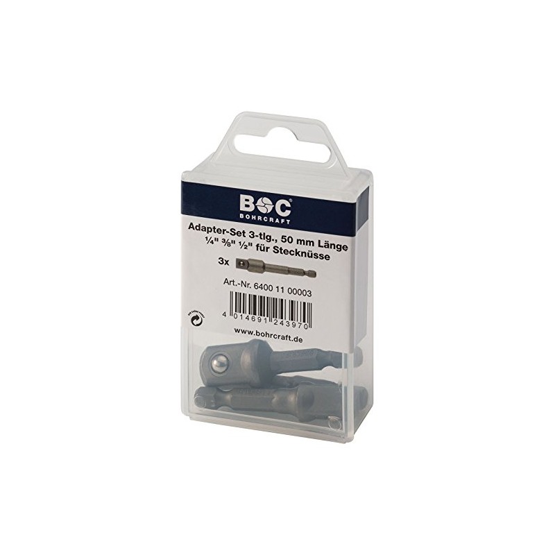 Bohrcraft Bit Adaptor Set 3 Pcs. (1/4 3/8 1/2 Inch – 50 mm – Pack of 1 64001100003