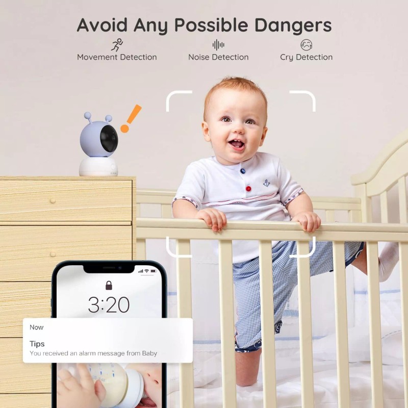 Movement & Cry & Noise DetectionBabies are naturally curious - the BOIFUN smart baby monitor detects movement and sends alerts to both the monitor and your smartphone, helping to minimize the risk of potential escapes from the crib and allowing you to keep an eye on your baby's condition and safety. BOIFUN can also distinguish between crying & noise detection to prioritize notifying you of the most essential things. | 1080P HDThanks to a high-performance CMOS sensor, the latest high-end chip, and a 3.6 mm lens, the full HD 1080P picture displays your baby's every move. With the BOIFUN 1080P monitor, you will always be able to see your baby's sweet-dream smile and hear every cute murmur. Happiness and peace of mind are nothing but that. | Humidity & Temperature MonitoringThe BOIFUN baby monitor displays the temperature and humidity of your baby's room, giving you the information in real time to help you provide the most comfortable environment for your baby. |
