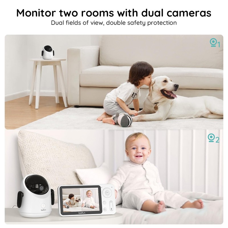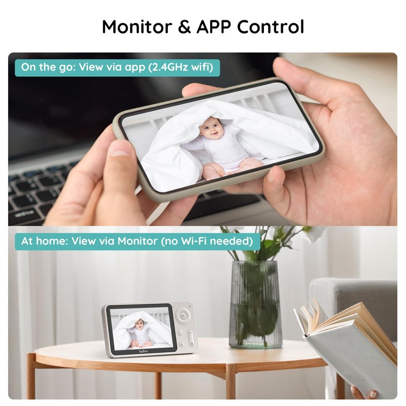 • [ App & Monitor Control] Boifun baby monitor lets you monitor your baby with just a tap on the smartphone app or monitor screen. Whether you're in the next room or miles away, stay connected to your baby and never miss a moment with live video.