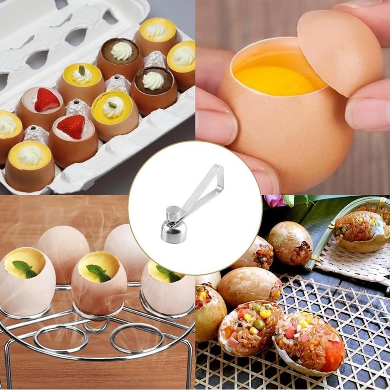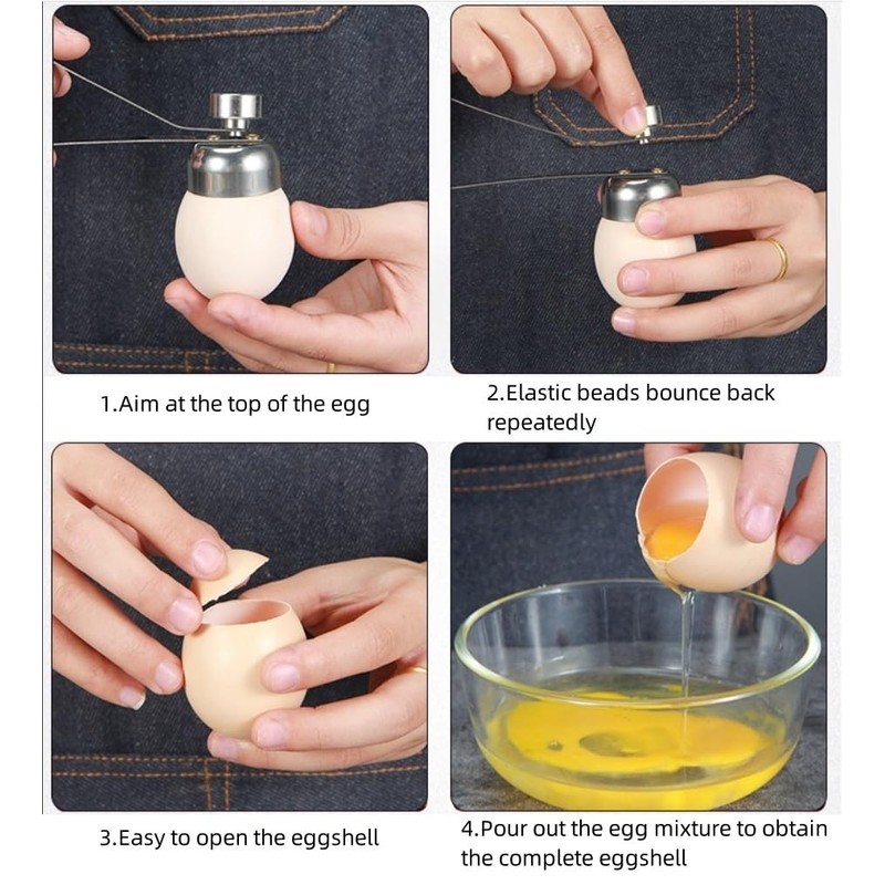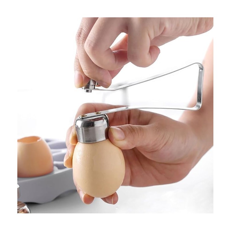 - Easy to use: Put the eggs in the egg tray Align the concave side with the top of the egg, just pull up the other side and loosen it, the spring mechanism will vibrate the sharp edge of the dome and scratch the shell. The perfect eggshell cuts soft or hard boiled eggs.