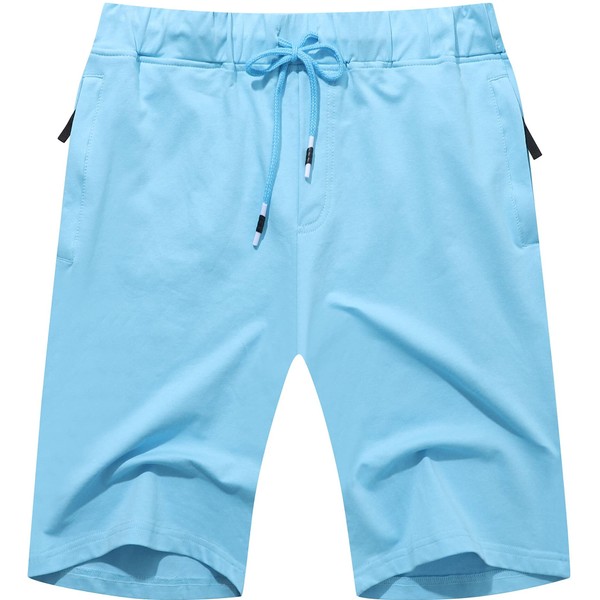 Boisouey Men's Shorts Casual Classic Fit Drawstring Summer Beach Shorts with Elastic Waist and Pockets Sky Blue S