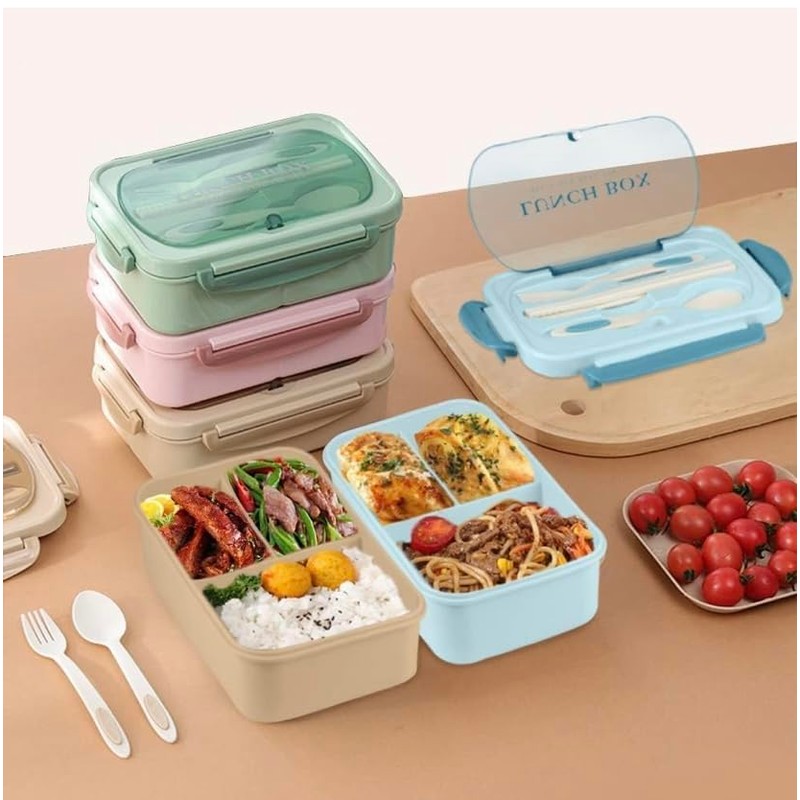 Boîte à Lunch Étanche – Bento Box Adulte, conteneur à déjeuner 1200 ml avec 3 Compartiments et Ustensiles, Idéale Pour le Bureau, l'École et les Activités en Plein Air.