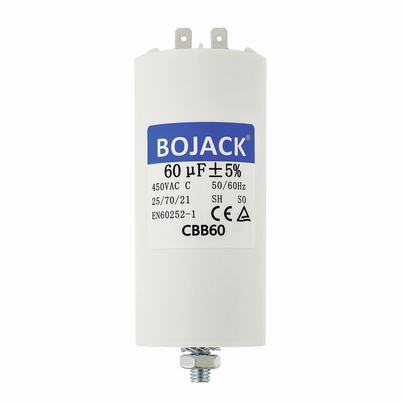 - Model: The BOJACK CBB60 capacitor has a capacity of 60 µF and a voltage of 450 V.