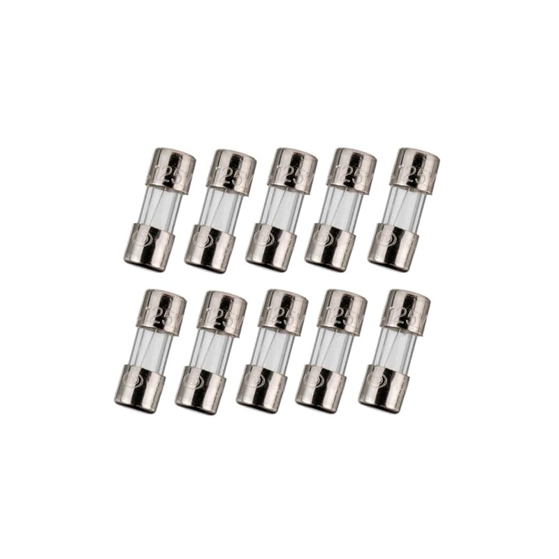 BOJACK 10 Pcs High Quality Fast Blow Glass Fuse Fuse Dimension:3.6x10mm/0.14x0.39 Inch Fuse Current: 2.5A Fuse Voltage: 125V The role of the fuse:When a circuit malfunctions or is abnormal, the current is constantly rising, and the increased current may damage some important components or valuable components in the circuit, or it may burn the circuit or even cause a fire.The fuse will cut off the current when the current abnormally rises to a certain height and a certain time, thereby protecting the safe operation of the circuit.