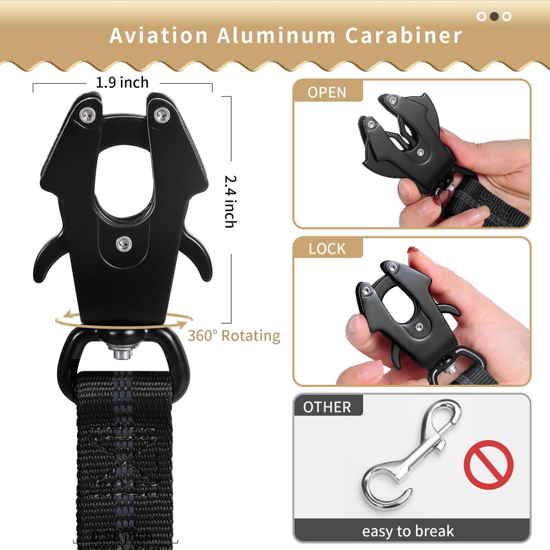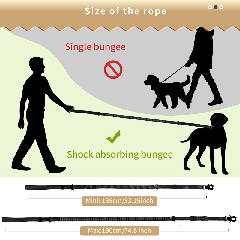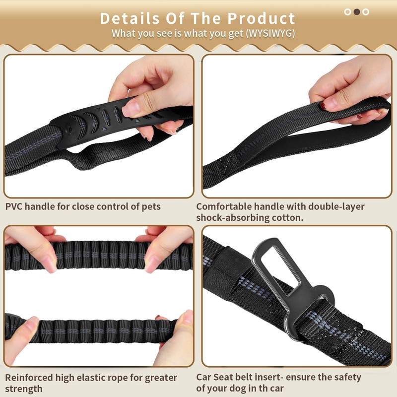 - BOJLY Heavy Duty Tactical Bungee Dog Leash, 4-6FT No Pull Dog Leash with Quick Release Carabiner, Reflective Shock Absorbing Leashes with Car Seatbelt for Medium Large Dogs,Black