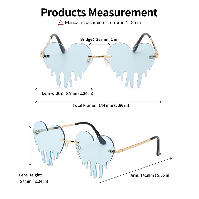 - ▶▶【Lentes de sol con diseño único de corazón】Gafas de sol con diseño único de corazón derretido. Diferentes apariencias convencionales en forma de corazón te dan una experiencia visual diferente. Las líneas derretidas cuelgan en las mejillas como borlas, el color de las hermosas lentes. Combina mejor con tu maquillaje. Muestra tu especial en el baile de graduación.