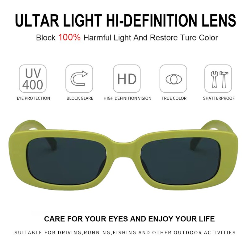 • 【RECTANGLE DESIGN】The thick rectangle frame and temples make the overall look of these sunglasses very chic. The simple and compact design makes our frames look very stylish and exquisite. This tiny sunglasses can be used with many outfits, from very modern styles to completely retro styles. It is suitable for showing your unique and cool attitude towards life.