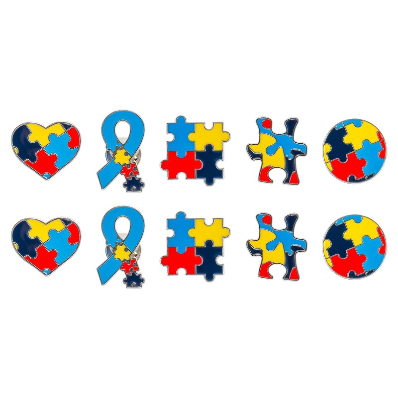 - Variety of Thoughtful Designs: Includes 5 different styles (puzzle pieces, ribbons, hearts) with 2 pins of each design. The colorful patterns help spread autism awareness in a visual way.