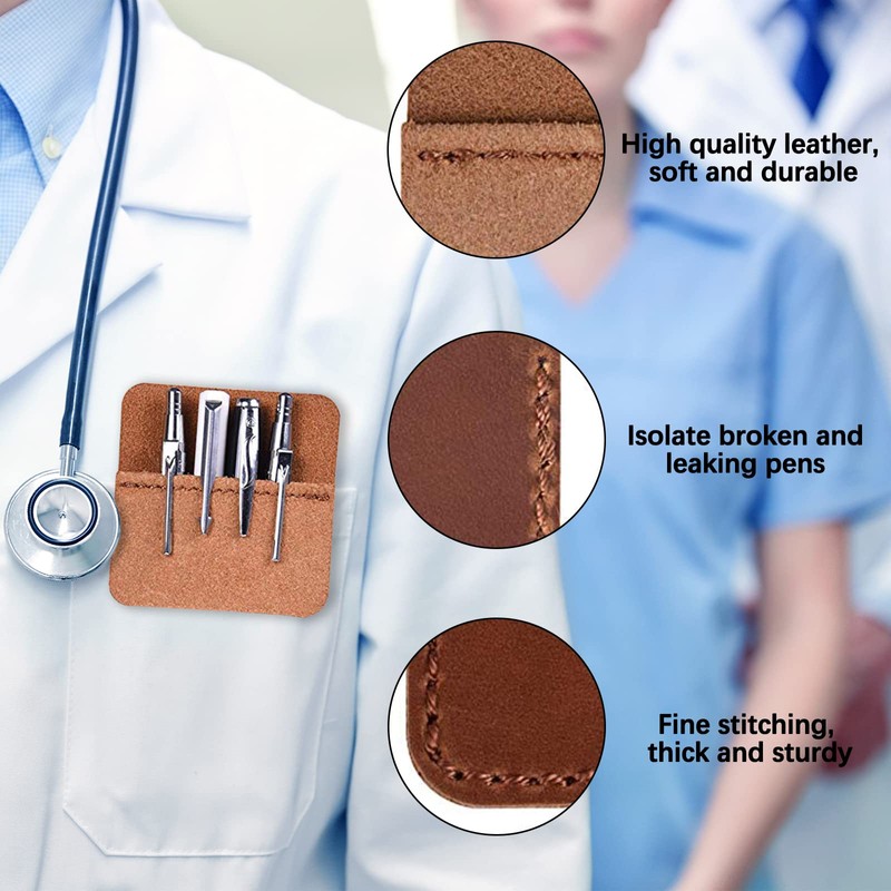 4 packs leather pen pocket holds s will not spoil your clothing design or color and they are a great way to protect your pens. For lab coats, shirts, briefcases. What’s more pocket protector for school office hospital supplies.
