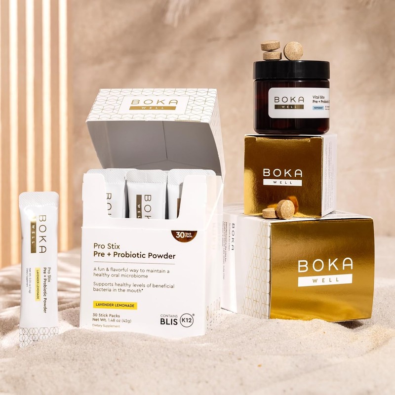 .Boka Pro Stix Oral Probiotics for Bad Breath – 30 Count Dental Probiotic Powder with BLIS K12, Pre + Probiotics for Teeth and Gums, Supports Fresh Breath and Oral Health, Lemonade Lavender Flavor