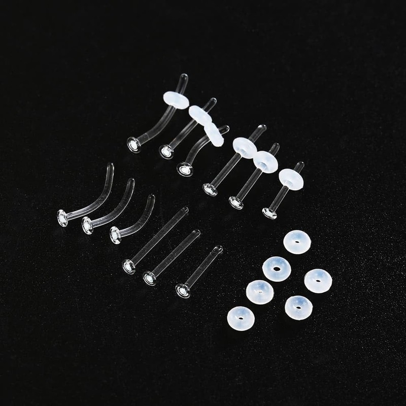 BOKABOO 12pcs Glass Piercing Retainers Set for Work/Surgery/Sports, 14g Curved Clear Nose Studs for Cartilage Tragus Conch Daith Helix Lip Nose Septum Eyebrow Nipple Tongue Belly Button