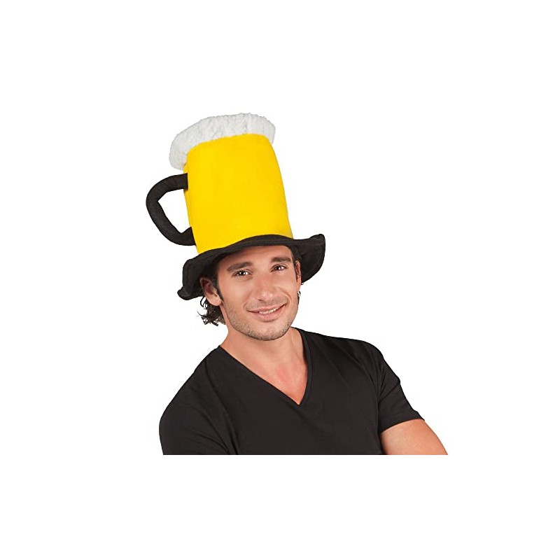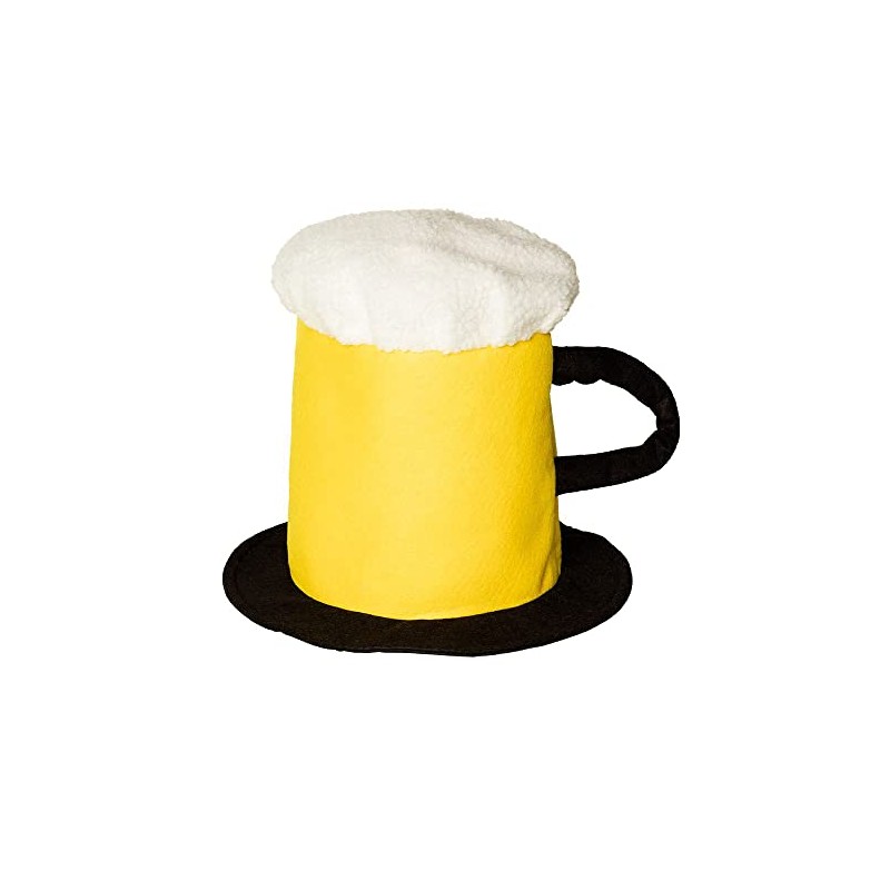 - The beer foam is depicted on the top of the hat with white, woolly fabric