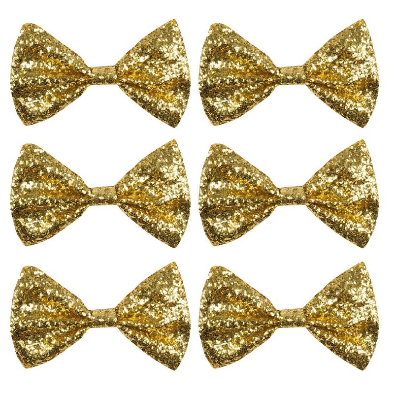 • This set contains 6 gold glittering bow ties