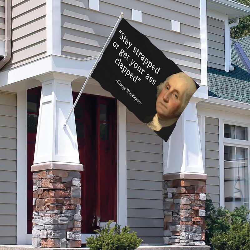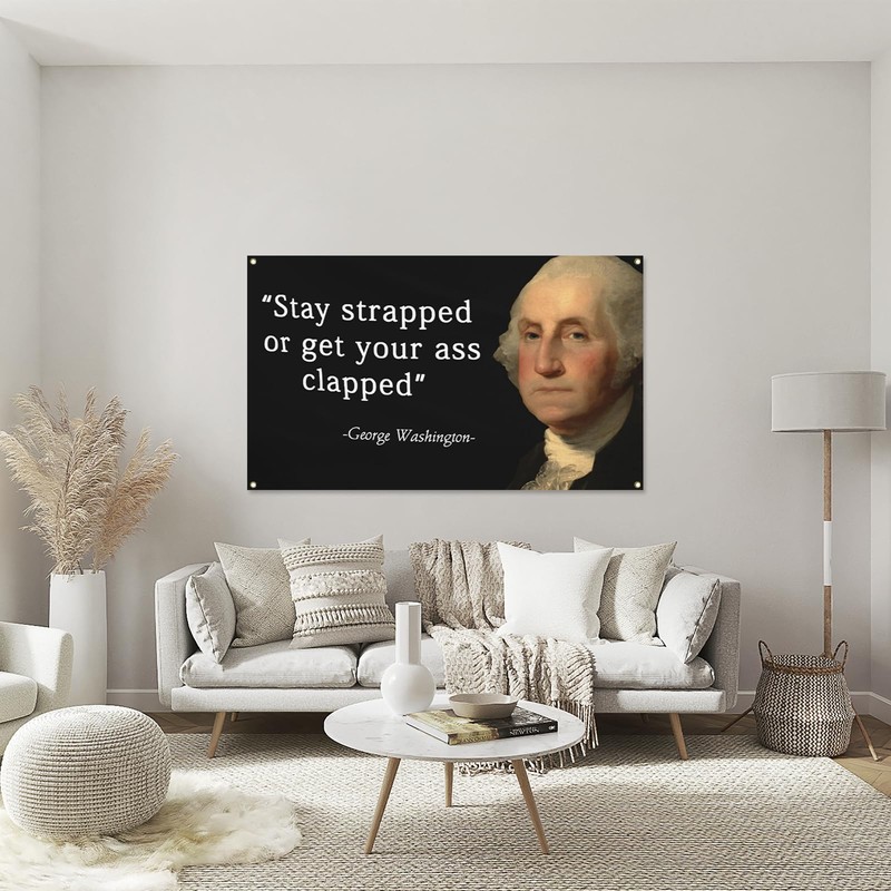 Bolcagob Stay Strapped Or Get Your Ass Clapped Flag 3x5FT Double Printed George Washington Quote Flag Tapestry Dorm Room Home College Decor 4 Shiny Brass Grommets 100% Polyester (3x5FT)