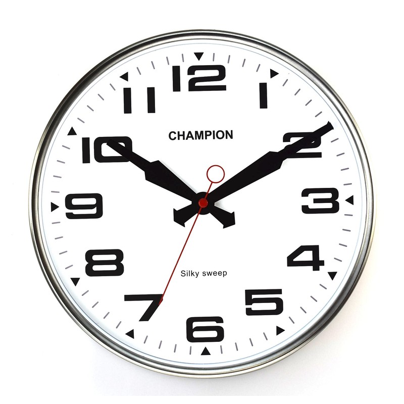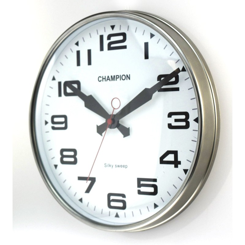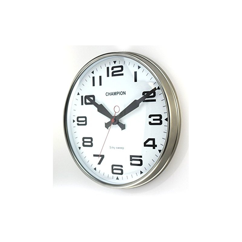 - Bold Champion Classic Silent Sweeping Seconds Hand Quartz Wall Clock with Domed Glass lens