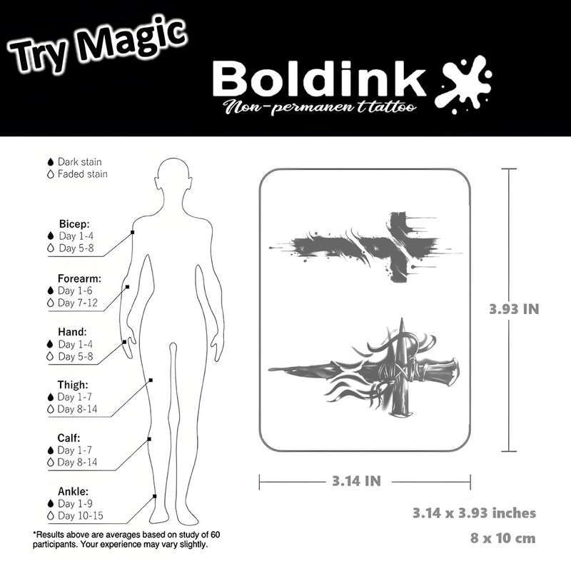 - 【Unique Product】Boldink temporary tattoos break the mold of traditional temporary tattoo stickers, distinguishing themselves from the simple fake tattoos of childhood. We specialize in creating waterproof, friction-resistant, and non-reflective tattoos that mimic the authenticity of real tattoos, providing consumers with a long-lasting experience of 7-14 days.