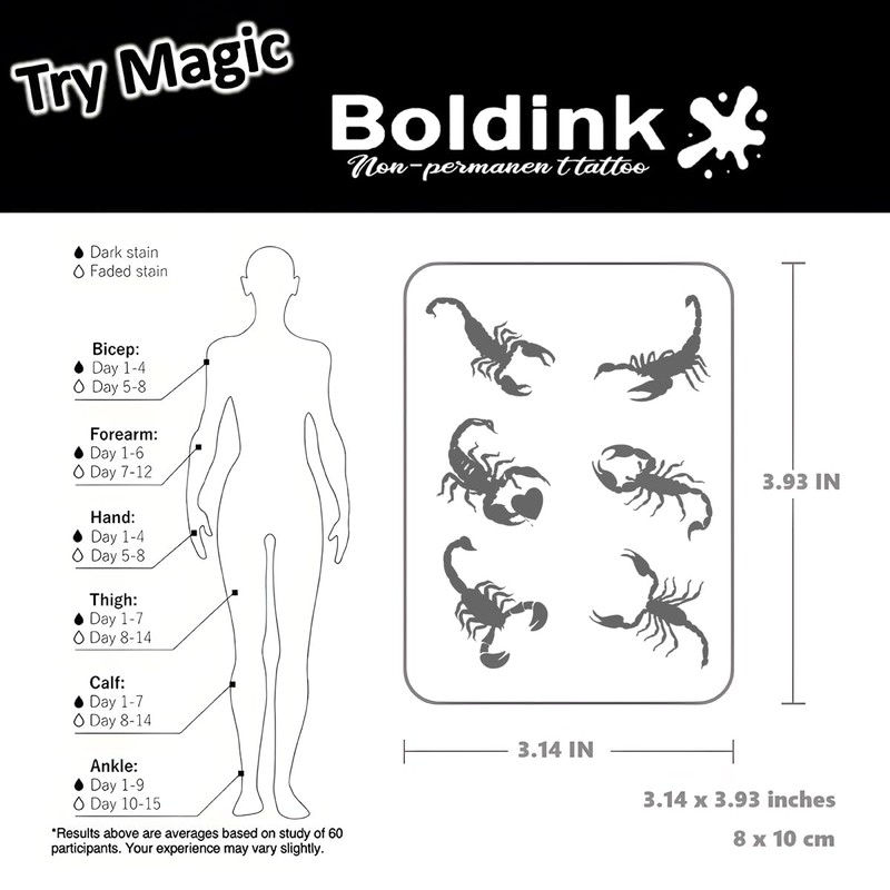 Boldink Semi-permanent tattoos, realistic fake tattoos, last 7-15 days, waterproof non-reflective temporary tattoo stickers, cruelty-free, uniquely designed exquisite packaging(Scorpion 1)