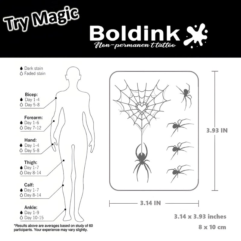 Boldink Semi-permanent tattoos, realistic fake tattoos, last 7-15 days, waterproof non-reflective temporary tattoo stickers, cruelty-free, uniquely designed exquisite packaging(Spider 3)