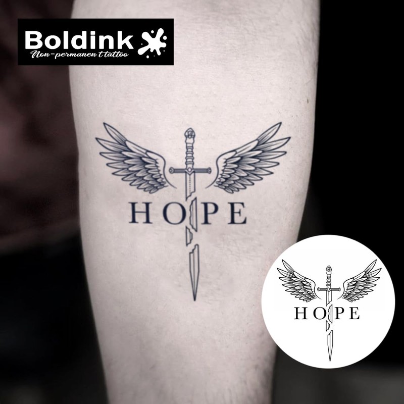 Boldink Temporary Tattoos, semi permanent tattoos, 15-day long lasting tattoo sticker, waterproof and anti-reflective, unique design(Sword of Hope)