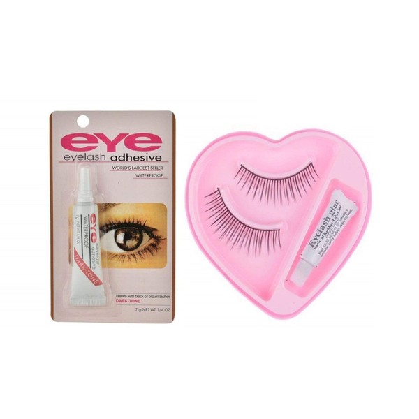 BoldnYoung Waterproof Clear White Blends with Black or Brown Eyelash Adhesive Glue and False Eyelashes for Women (Free Size) Combo Pack