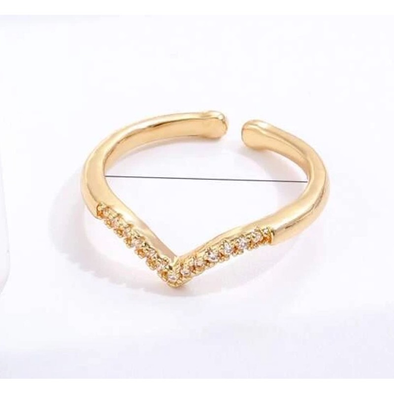 Bolenvi Crystallized Gold Wishbone Adjustable Ring in 18K Gold Pated Jewelry For Her