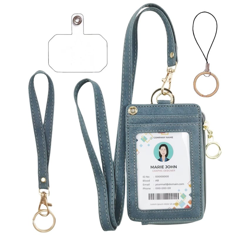 bolimoss Blue Lanyard Wallet for ID Badges with Long Neck Lanyards and Wristlet Strap, Badge Holder Case with Zipper Pocket for Offices ID, School ID, Driver Licence,Travel Cruise Ship Cards