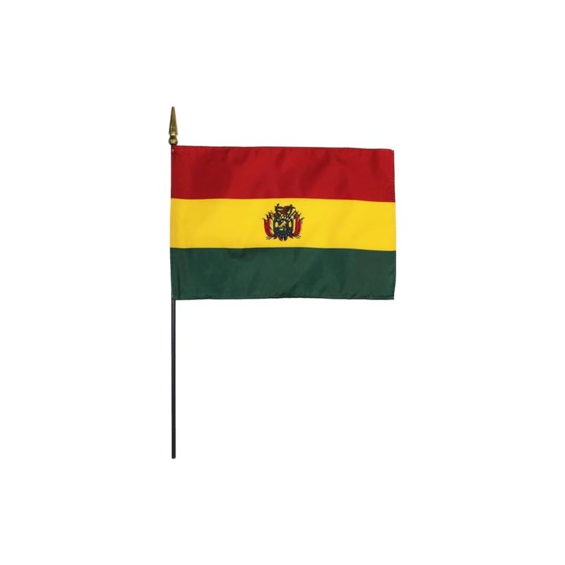 - Hemmed Flag Mounted on 20 inch Black Wooden Staff with Gilded Spear