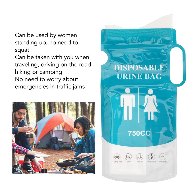- [Compacta y liviana] La bolsa de orina desechable, diseñada para viajar, es un dispositivo compacto y liviano diseñado para proporcionar una solución conveniente e higiénica para orinar en situaciones donde el acceso a baños regulares es limitado o no es posible.