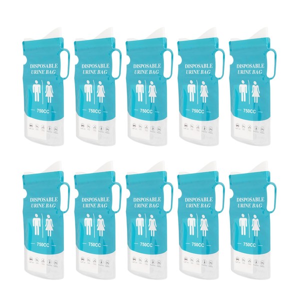 - [Cantidad y capacidad suficientes] Hay 10 bolsas de orina desechables con una capacidad de 750 ml, que son desechables y no ensucian. Diseño unisex, adecuado para hombres, mujeres y niños. También es adecuado para pacientes con problemas de movilidad y mujeres embarazadas.