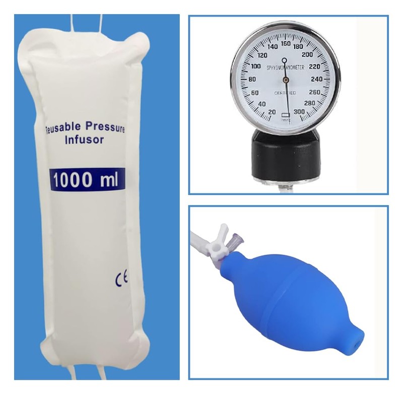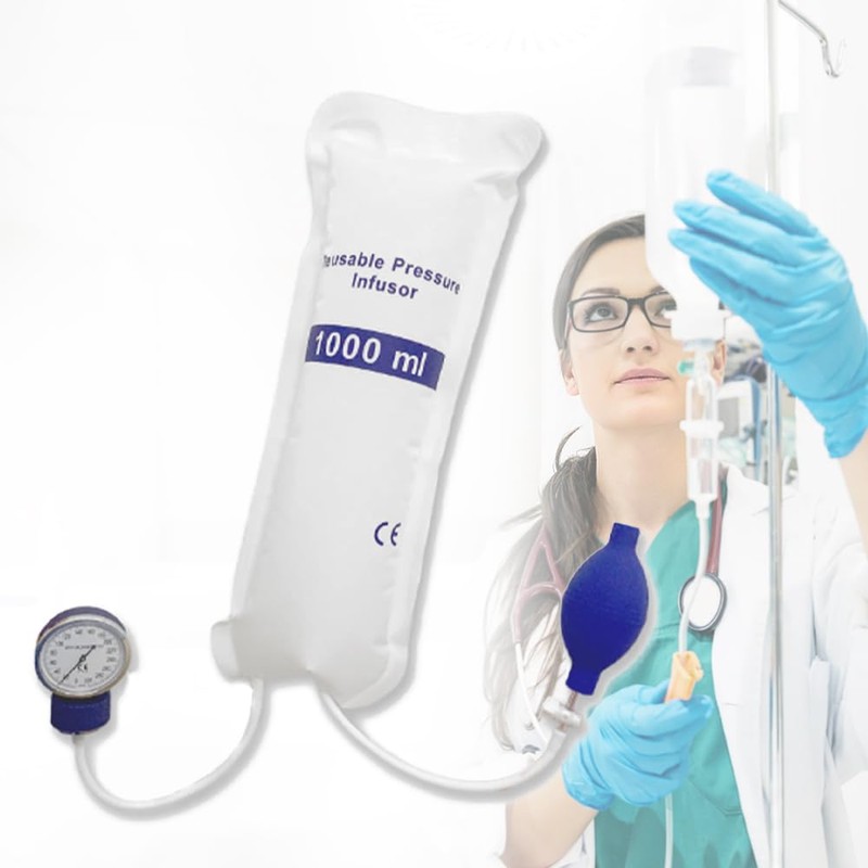 Bolsa de presión portátil con medidor y bomba, transparente, 1000 ml, 1 unidad