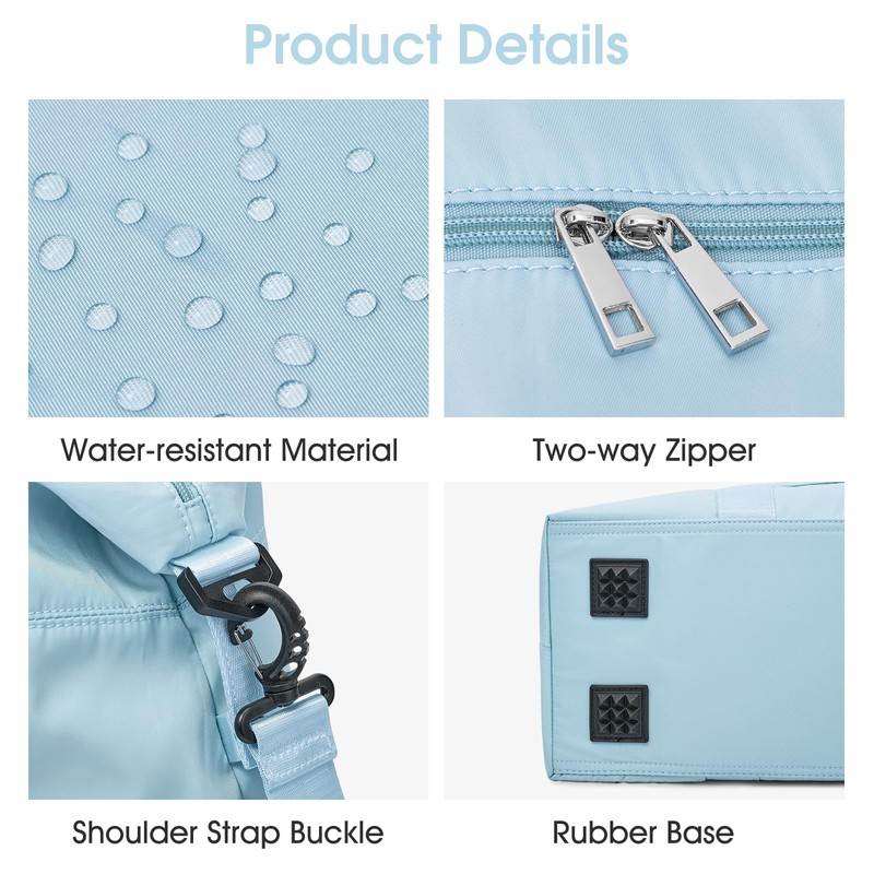 - Bolsa de gimnasio y bolsa de fin de semana para mujer: Esta bolsa de gimnasio es un buen compañero para deportes como yoga, gimnasio, natación. Además, es una bolsa de fin de semana perfecta para viajes, camping, senderismo, viaje de autobús, etc. También es adecuado para usar como bolsa de hospital, bolsa de lona, etc.