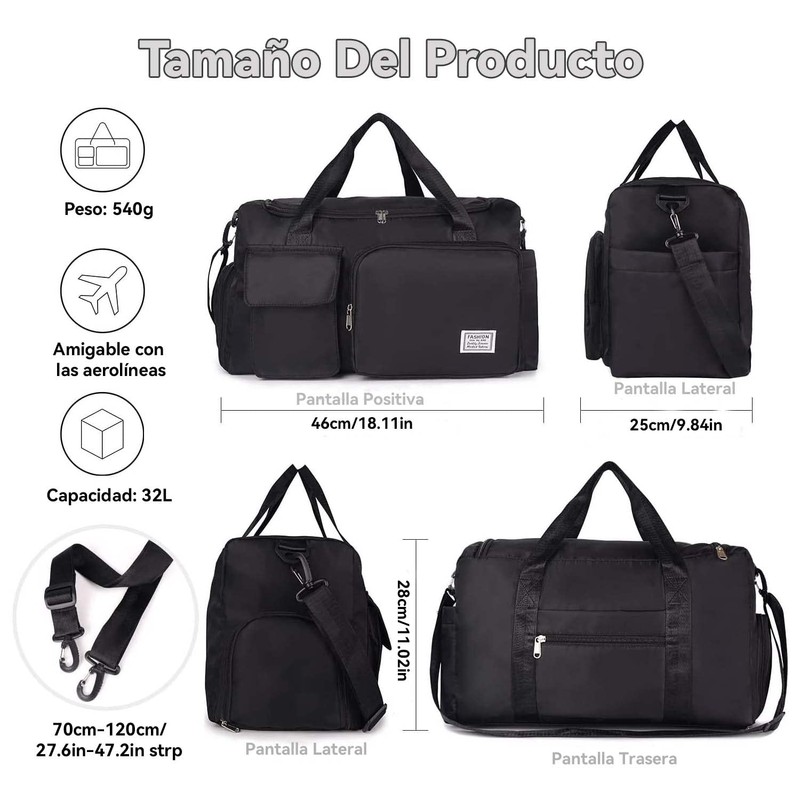- 【Bolsa de Viaje Con Múltiples Bolsillos】Nuestra bolsa de viaje/gimnasio mide 46*25*28cm, nuestra bolsa de gimnasio deportivo es un total de 7 bolsillos --1 espacioso bolsillo principal, 1 compartimento para zapatos, 4 bolsillo exterior y 1 bolsillo húmedo para ropa mojada, artículos de tocador o toallas,manteniendo todos sus elementos esenciales bien organizados.