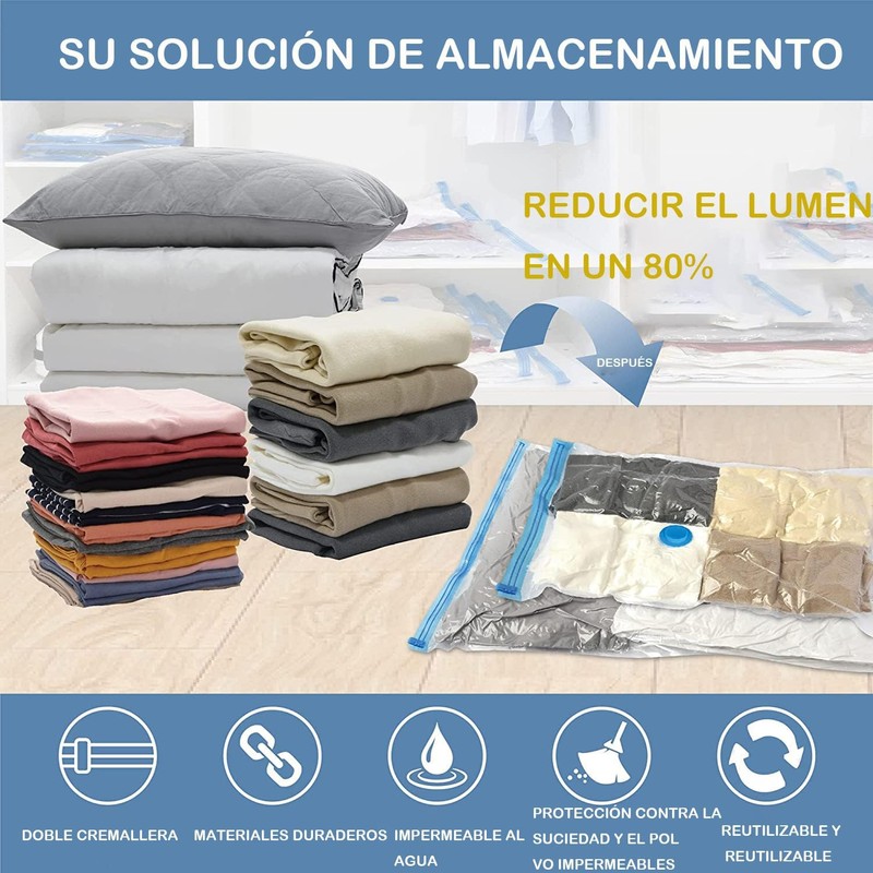 Bolsas de Almacenamiento Vacío,Reutilizables Bolsas de Compresió con Bomba Manual Gratis para Viajes,Ahorra de Espacio,Premium Vacuum Storage Bags para Ropa,Edredones,Mantas,Almohadas,Bolsos