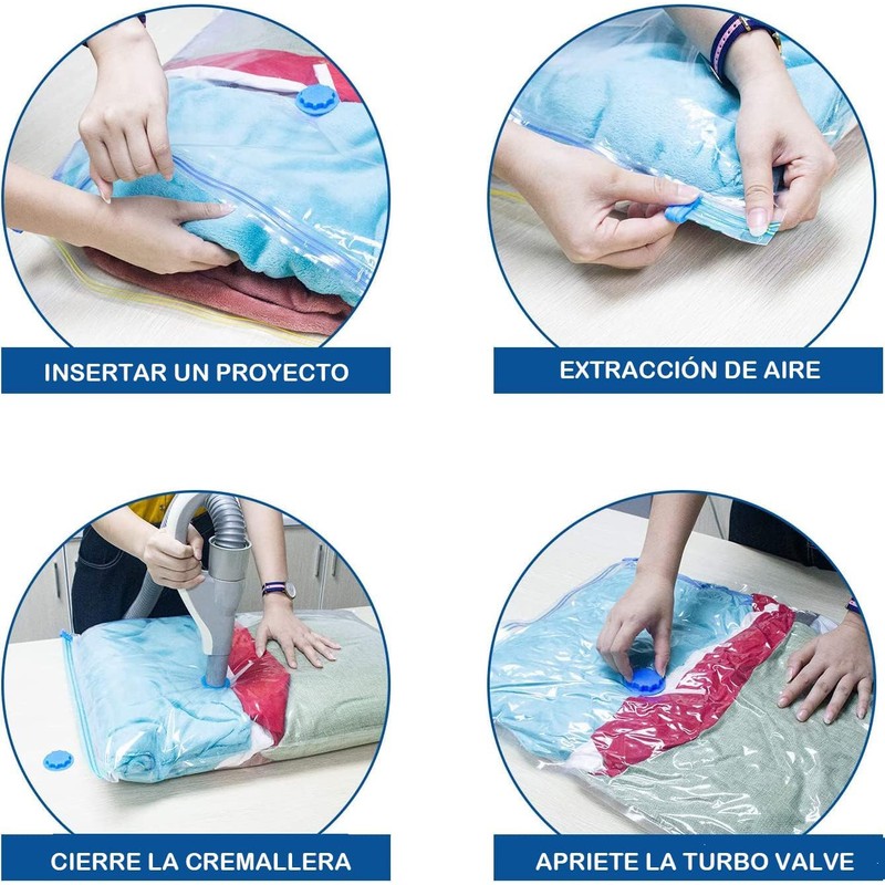- [Proceso de Vacío Rápido] Nuestra bolsa de sellado al vacío es fácil de usar, solo necesita colocar artículos, sellar la cremallera y bombear vacío. El uso de nuestras bolsas de almacenamiento al vacío tiene una variedad de usos, incluyendo almacenamiento y movimiento. Puede colocar la bolsa de vacío comprimida en cualquier ángulo, desde ponerse de pie en el armario hasta acostarse en la maleta para facilitar el embalaje