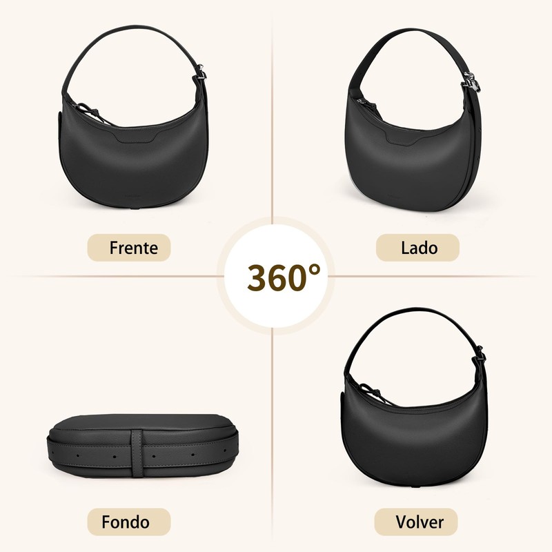 - MÚLTIPLES FORMAS DE LLEVAR: Este lindo bolso de hombro de media luna, puede obtener tres tipos de bolsas: bolso de mano, bolso de hombro debajo del brazo y bolso crossbody sin cambiar la correa para el hombro. La correa de hombro se puede ajustar entre 23-55cm, que puede satisfacer las necesidades de altura de más personas, y también puede ser fácilmente emparejado con una variedad de ropa.