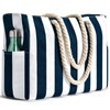 Bolsas de playa para mujer, bolsa de piscina impermeable a prueba de arena, bolsa de playa de gran capacidad con cierre a rayas, Azul oscuro