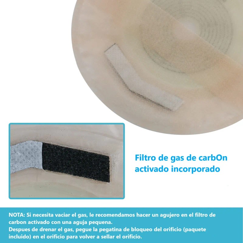 El filtro integrado reduce la hinchazón y neutraliza olores. Incluye pegatinas para sellar los orificios durante la noche o al estar acostado.