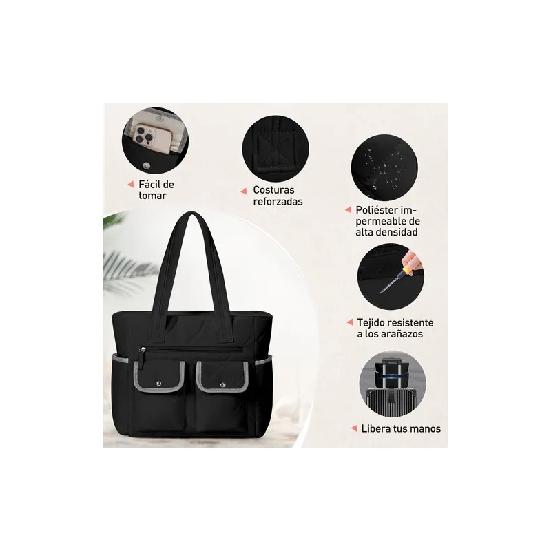 Bolsas Para Dama Tote Bag Nubily Color Negro De Viaje Con Múltiples Bolsillos Diseño De La Tela Lisa