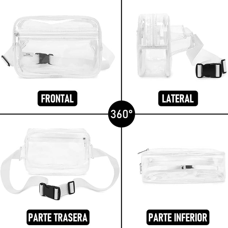 Bolso Bandolera Pequeño para Mujer, Hombre,Impermeable con Riñonera Ajustable, para Juegos,Viajes,Deportes,Playa,Conciertos Riñonera Transparente, Deporte (Blanco-Transparente)